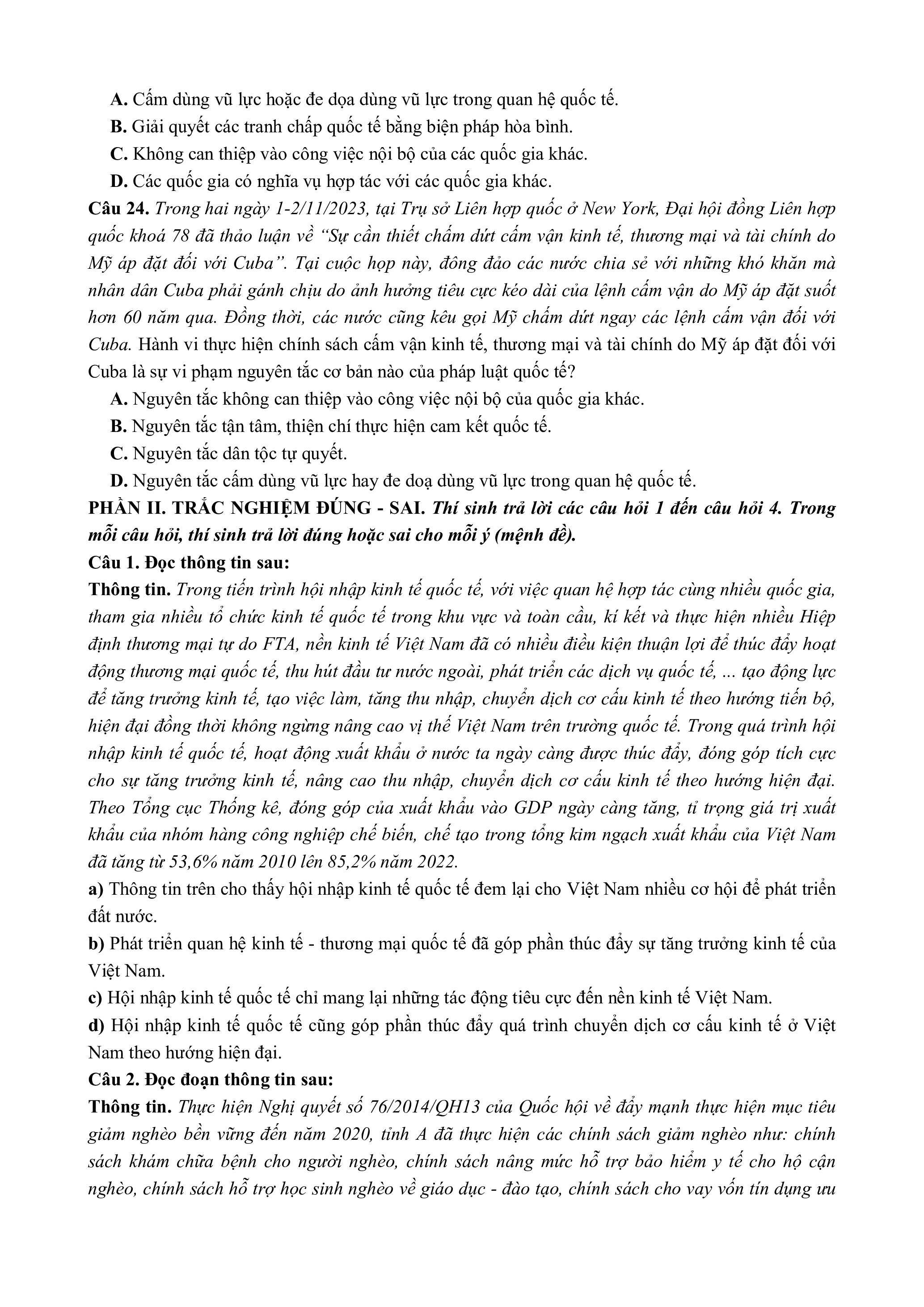 Câu 24. Trong hai ngày 1-2/11/2023, tại Trụ sở Liên hợp quốc ở New York, Đại hội đồng Liên hợp