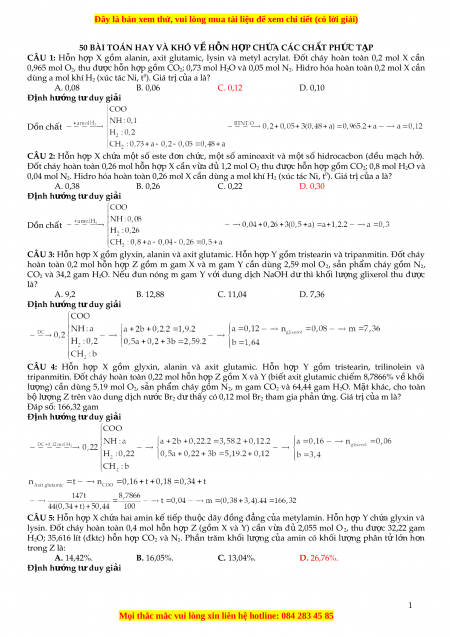 50 BÀI TOÁN HAY VÀ KHÓ V Ề H N Ỗ H P Ợ CH A Ứ CÁC CH T Ấ PH C Ứ T P Ạ CÂU 1: H n ỗ h p ợ X g m