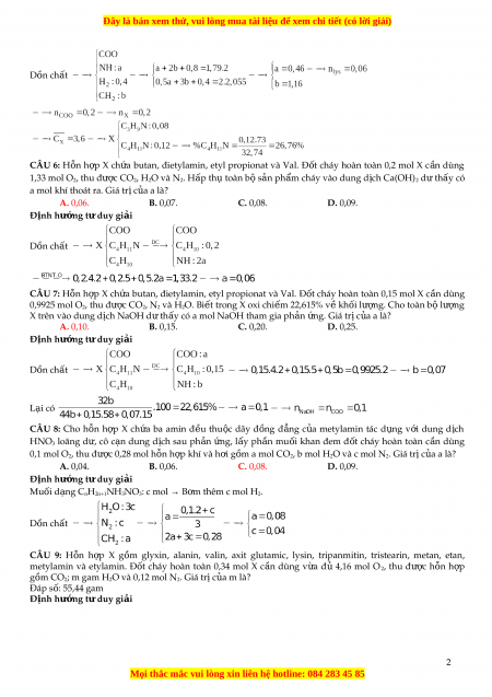 c CO2, H2O và N2. H p th toàn b s n ph m cháy vào dung d ch Ca(OH)2 d th y có a mol khí thoát ra. Giá tr ị c a ủ a là? A. 0,06. B. 0,07. C. 0,08. D. 0,09. Định h n ướ g t ư duy gi i ả D n ồ ch t ấ CÂU 7: H n ỗ h p ợ X ch a
