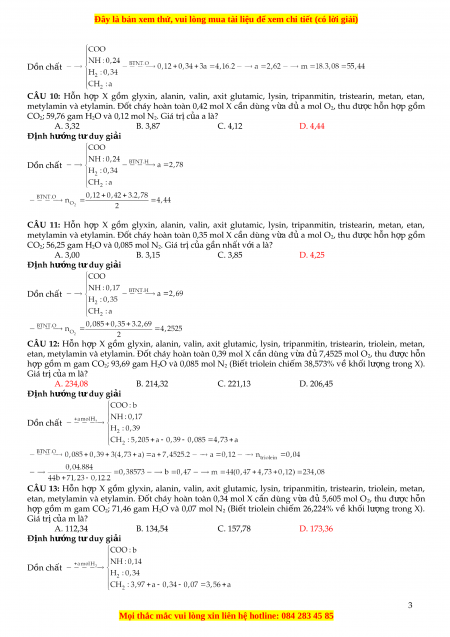 2; 59,76 gam H2O và 0,12 mol N2. Giá tr c a a là? A. 3,32 B. 3,87 C. 4,12 D. 4,44 Định h n ướ g t ư duy gi i ả D n ồ ch t ấ CÂU 11: H n ỗ h p ợ X g m
