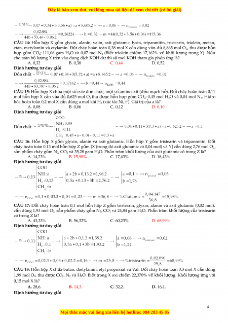 ng c a axit glutamic có trong Z là? A. 14,23% B. 15,98% C. 17,43% D. 18,43% Định h n ướ g t ư duy gi i ả CÂU 17: Đ t