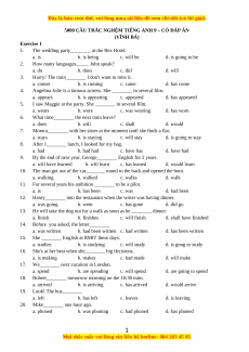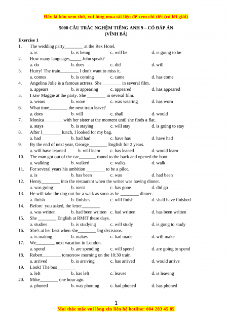 5000 CÂU TRẮC NGHỆM TIẾNG ANH 9 – CÓ ĐÁP ÁN (VĨNH BÁ) Exercise 1 1.