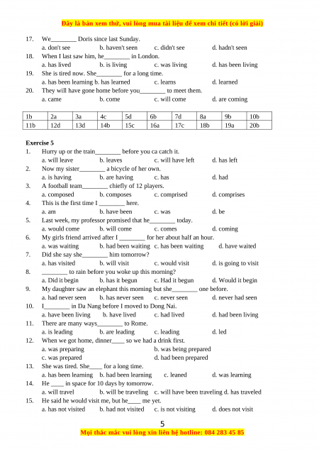 a. are going to finish b. have finished c. will finish d. will have finished 1d 2b 3b 4d 5c 6a 7b 8b 9b 10c 11b 12b 13b 14b 15b 16a 17b 18b 19d 20a Exercise 3 1.