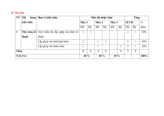 Mức độ nhận thức Tổng kiến thức Mức 1 Mức 2 Mức 3 Số CH % TN TL TN TL TN TL TN TL điểm 1