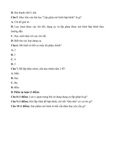 Lắp ghép mô hình bập bênh 2 1 1 3 1 40% Lắp ghép mô hình robot 1 1 1 2 1 30% Tổng 5 1 2 1 1 7 3 Tỉ lệ (%) 60 % 30 % 10 % 100% III. Đề kiểm tra Sở GD- ĐT …