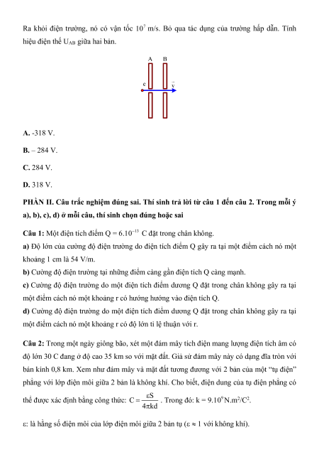 hiệu điện thế UAB giữa hai bản. A. -318 V. B. – 284 V. C. 284 V. D. 318 V.