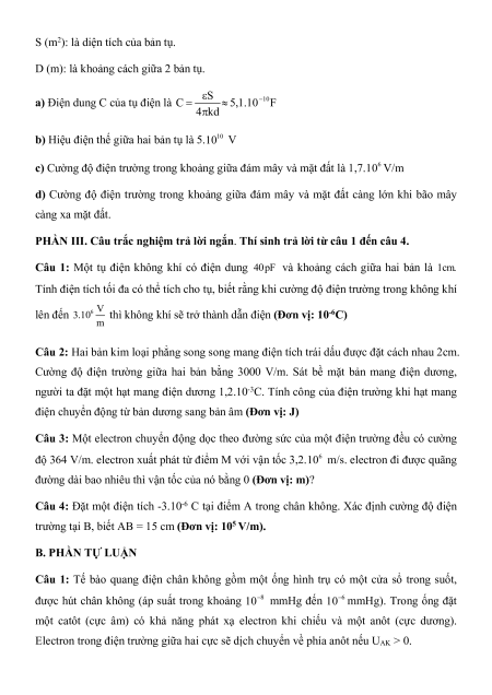 thể được xác định bằng công thức: S C . Trong đó: k = 9. 9 10 N.m2/C2. 4 k d