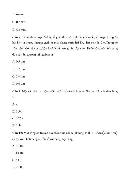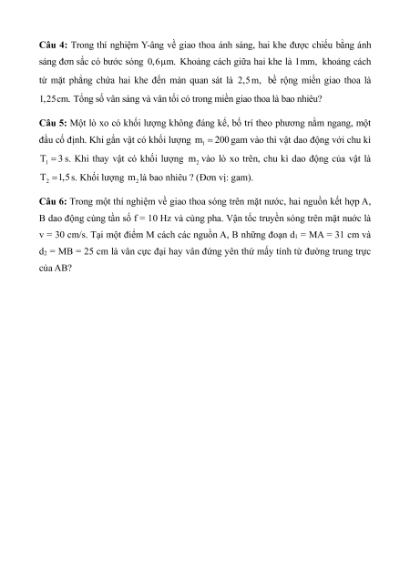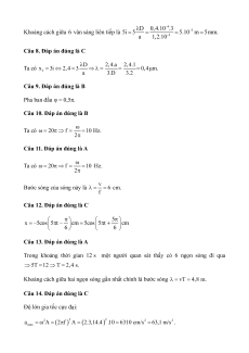 Câu 8: Trong thí nghiệm Y-âng về giao thoa với ánh sáng đơn sắc, khoảng cách giữa