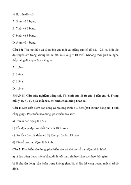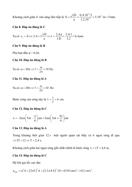 Câu 13: Trong khoảng thời gian 12 s một người quan sát thấy có 6ngọn sóng đi qua