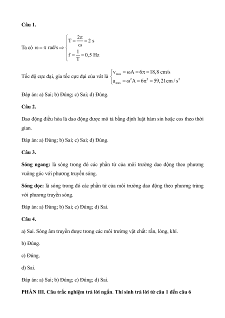 Câu 1: Trong dao động điều hoà thì li độ, vận tốc và gia tốc là những đại lượng biến