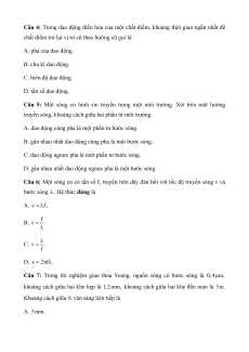 Câu 5: Một sóng cơ hình sin truyền trong một môi trường. Xét trên một hướng