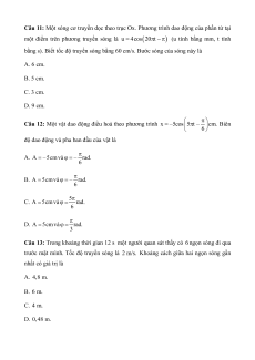 Câu 11: Một sóng cơ truyền dọc theo trục Ox. Phương trình dao động của phần tử tại