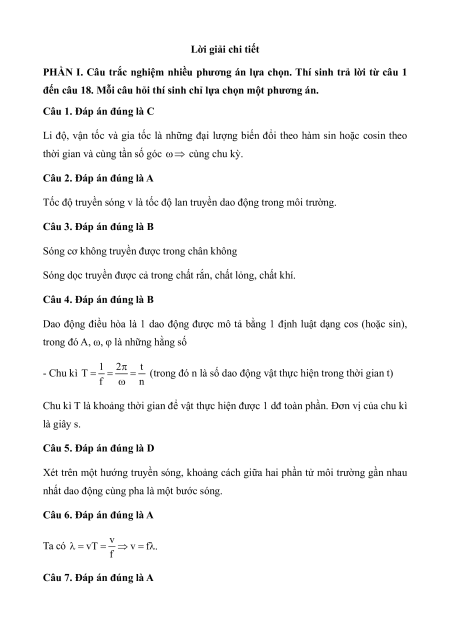 PHẦN I. Câu trắc nghiệm nhiều phương án lựa chọn. Thí sinh trả lời từ câu 1