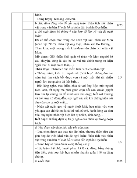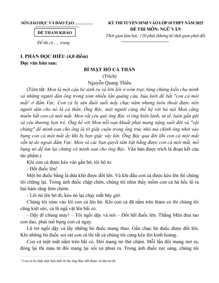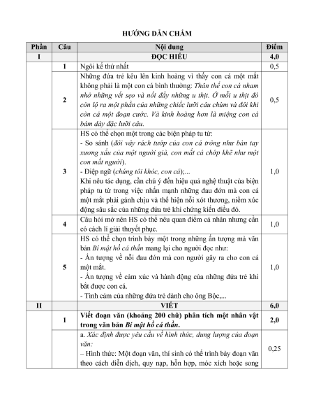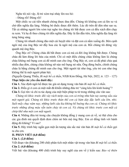 Viết đoạn văn (khoảng 200 chữ) phân tích một nhân vật trong văn bản Bí mật hồ cá thần. Câu 2. (4,0 điểm)
