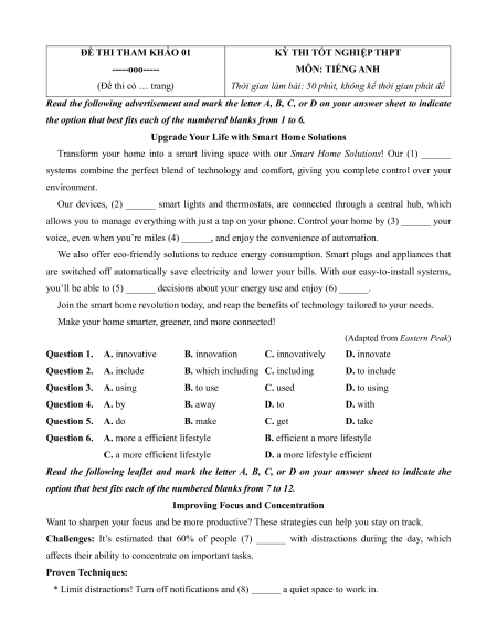 Question 1. A. innovative B. innovation C. innovatively D. innovate Question 2. A. include