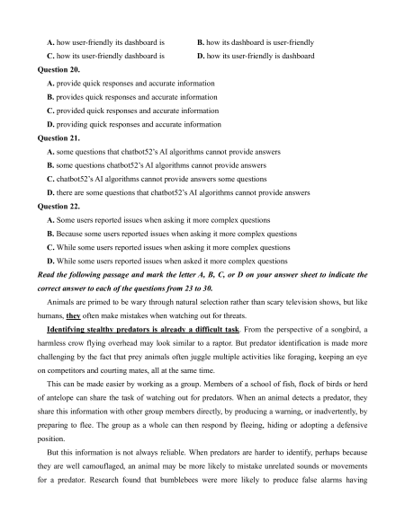 D. there are some questions that chatbot52’s AI algorithms cannot provide answers Question 22.