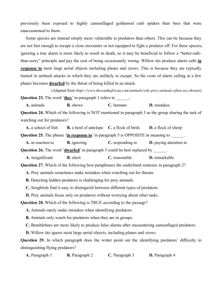 for a predator. Research found that bumblebees were more likely to produce false alarms having