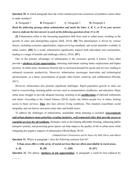 Read the following passage and mark the letter A, B, C, or D on your answer sheet to indicate the