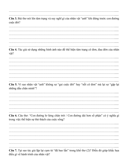 Câu 3. Bài thơ nói lên tâm trạng và suy nghĩ gì của nhân vật “anh” khi đứng trước con đường cuộc đời?