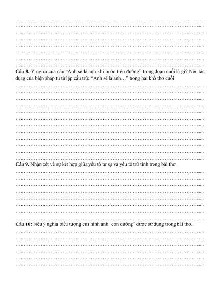 Câu 10: Nêu ý nghĩa biểu tượng của hình ảnh “con đường” được sử dụng trong bài thơ.