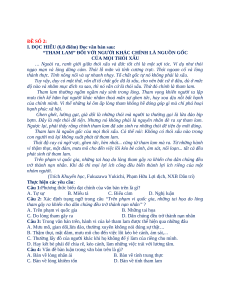 e. Sáng tạo: Bố cục mạch lạc, lí lẽ dẫn chứng xác đáng, sáng tạo. ĐỀ SỐ 2: