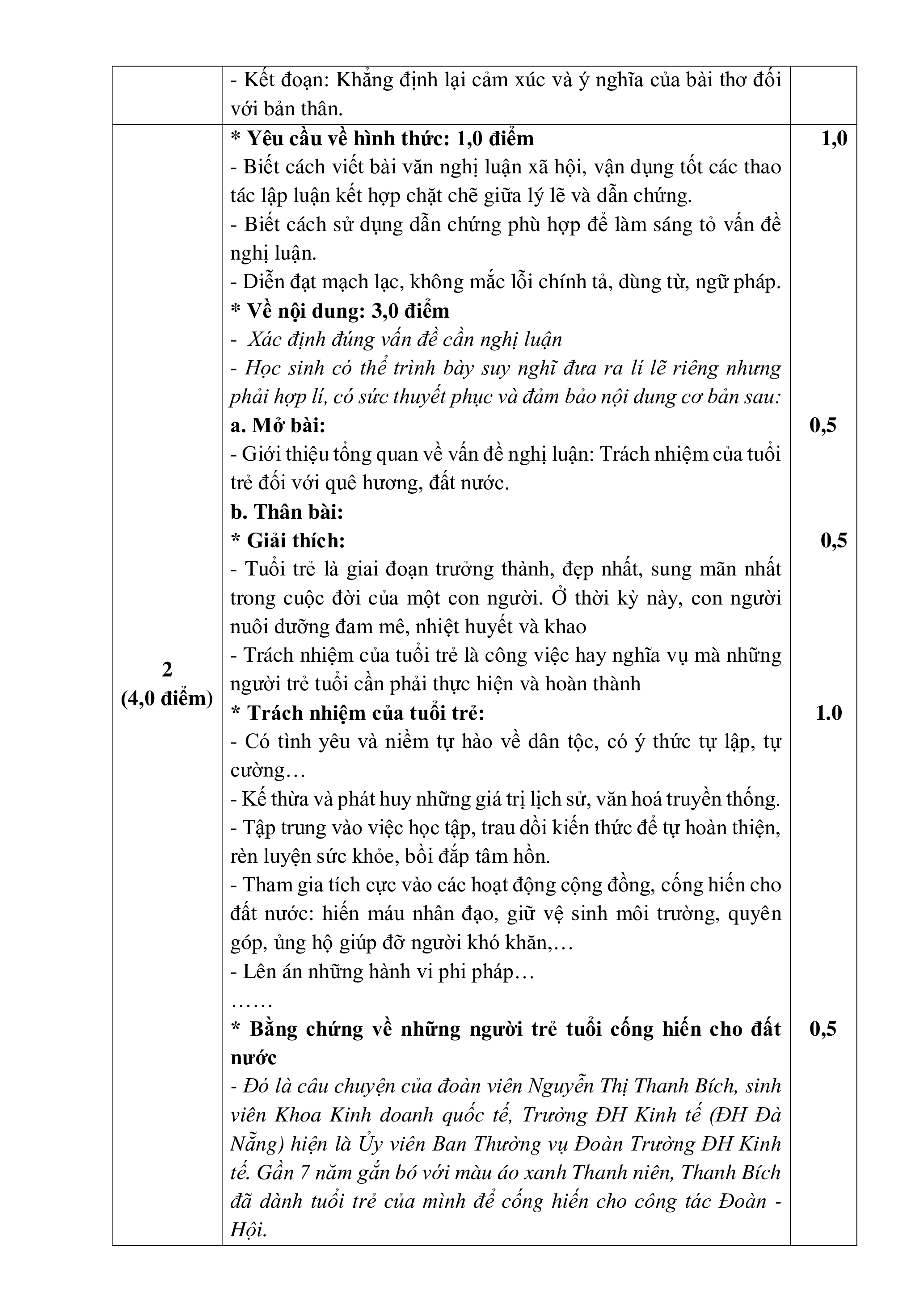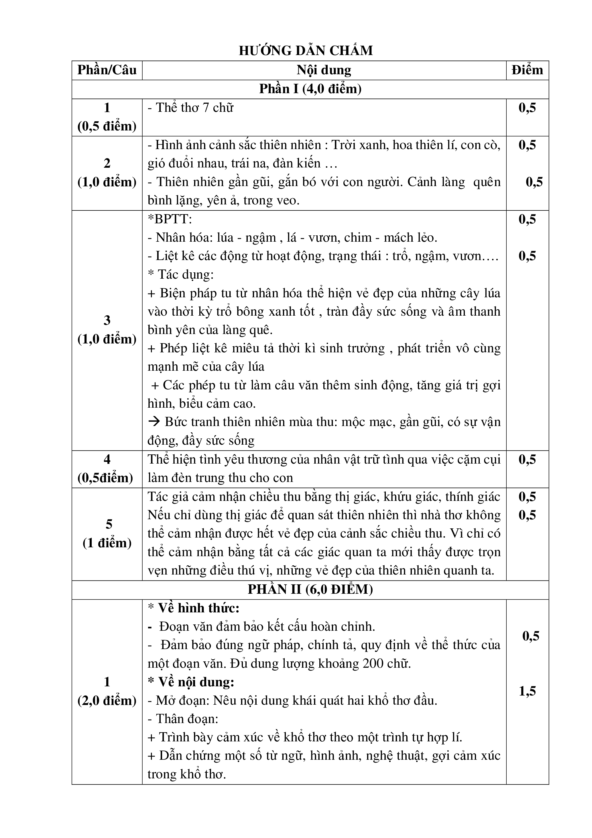 của thế hệ trẻ đối với đất nước trong thời đại hiện nay. HƯỚNG DẪN CHẤM Phần/Câu Nội dung Điểm Phần I (4,0 điểm) 1 - Thể thơ 7 chữ 0,5 (0,5 điểm)