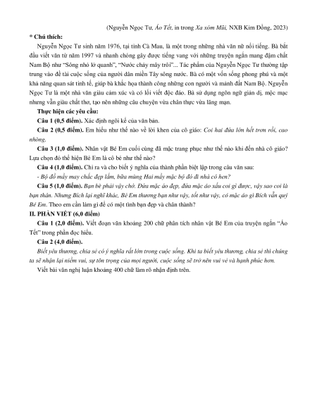 (Nguyễn Ngọc Tư, Áo Tết, in trong Xa xóm Mũi, NXB Kim Đồng, 2023)