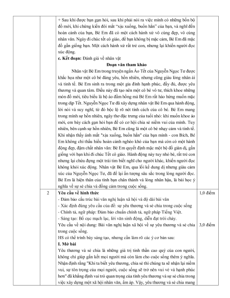 Yêu cầu về nội dung: Bài văn nghị luận xã hội về sự yêu thương và sẻ chia 3,0 điểm trong cuộc sống.