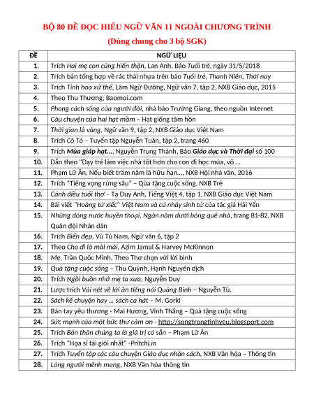 BỘ 80 ĐỀ ĐỌC HIỂU NGỮ VĂN 11 NGOÀI CHƯƠNG TRÌNH