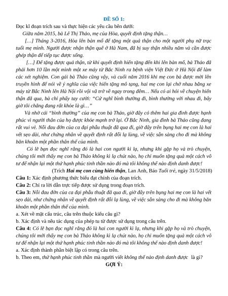 (Dùng chung cho 3 bộ SGK) ĐỀ NGỮ LIỆU 1.