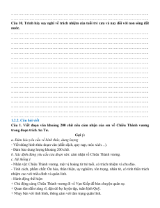 Câu 10. Trình bày suy nghĩ về trách nhiệm của tuổi trẻ xưa và nay đối với non sông đất nước.