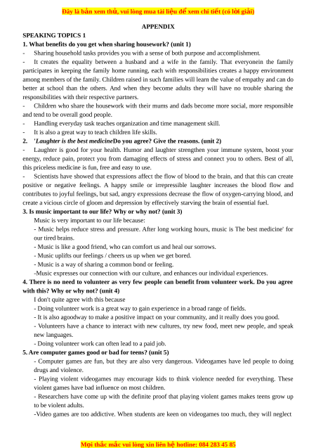 ệ đ xe ể m chi ti t ế (có l i ờ gi i ả ) APPENDIX SPEAKING TOPICS 1