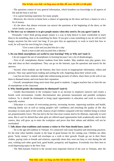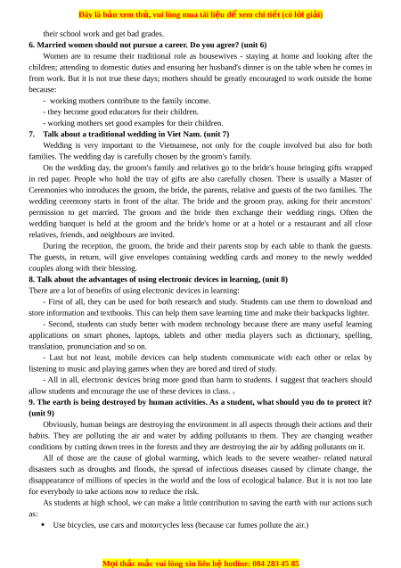7. Talk about a traditional wedding in Viet Nam. (unit 7)