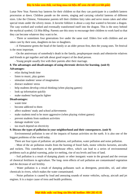8. Talk about the advantages of using electronic devices in learning, (unit 8)