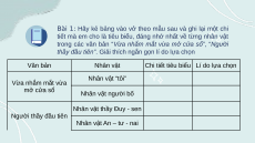 Chi tiết tiêu biểu Lí do lựa chọn Nhân vật “tôi” Vừa nhắm mắt vừa mở cửa sổ Nhân vật người bố Nhân vật thầy Đuy - sen Người thầy đầu tiên Nhân vật An – tư - nai
