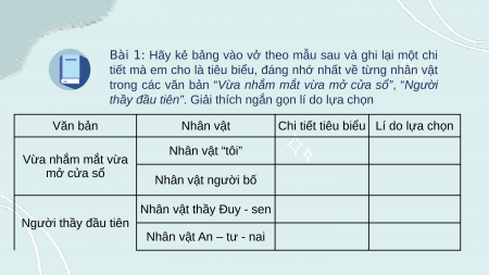 thầy đầu tiên”. Giải thích ngắn gọn lí do lựa chọn Văn bản Nhân vật