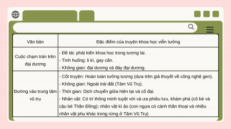 Văn bản Đặc điểm của truyện khoa học viễn tưởng