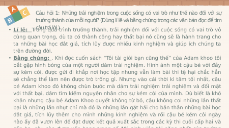trưởng thành của mỗi người? (Dùng lí lẽ và bằng chứng trong các văn bản đọc để tìm