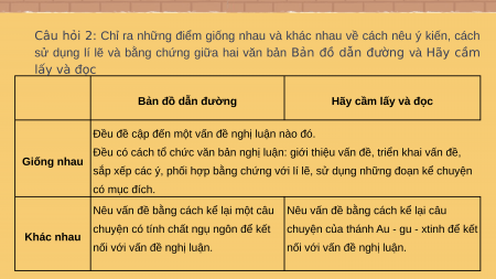 sử dụng lí lẽ và bằng chứng giữa hai văn bản Bản đồ dẫn đường và Hãy cầm lấy và đọc