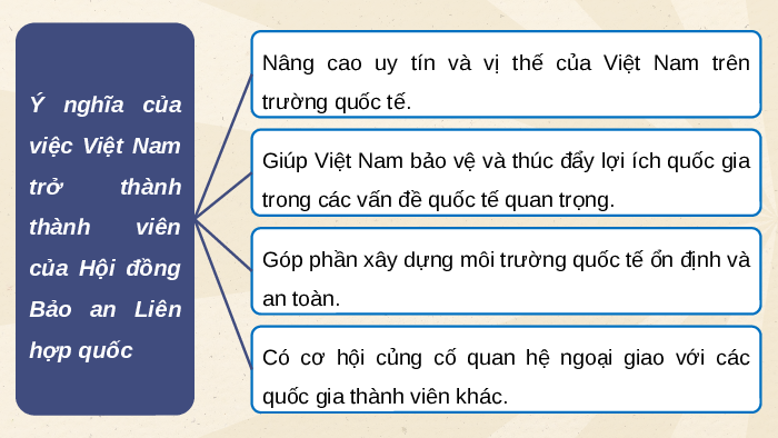 Góp phần xây dựng môi trường quốc tế ổn định và Bảo an Liên an toàn. hợp quốc