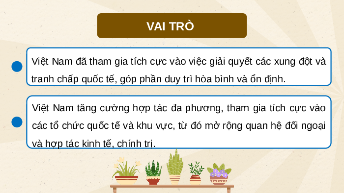 Có cơ hội củng cố quan hệ ngoại giao với các quốc gia thành viên khác. VAI TRÒ