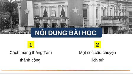 sử nào ở Việt Nam. Em biết gì về sự kiện đó? BÀI 13: CÁCH MẠNG THÁNG TÁM NĂM 1945 NỘI DUNG BÀI HỌC 1 2 Cách mạng tháng Tám Một sốc câu chuyện thành công lịch sử
