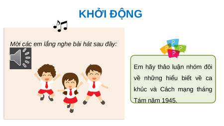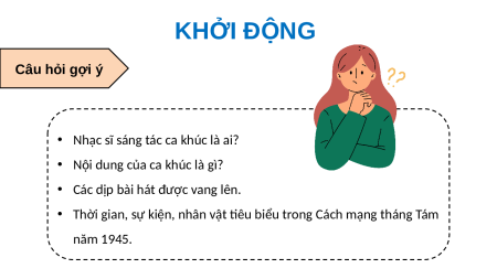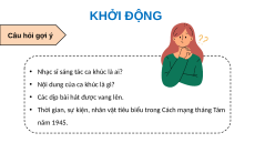 về những hiểu biết về ca khúc và Cách mạng tháng Tám năm 1945. KHỞI ĐỘNG Câu hỏi gợi ý