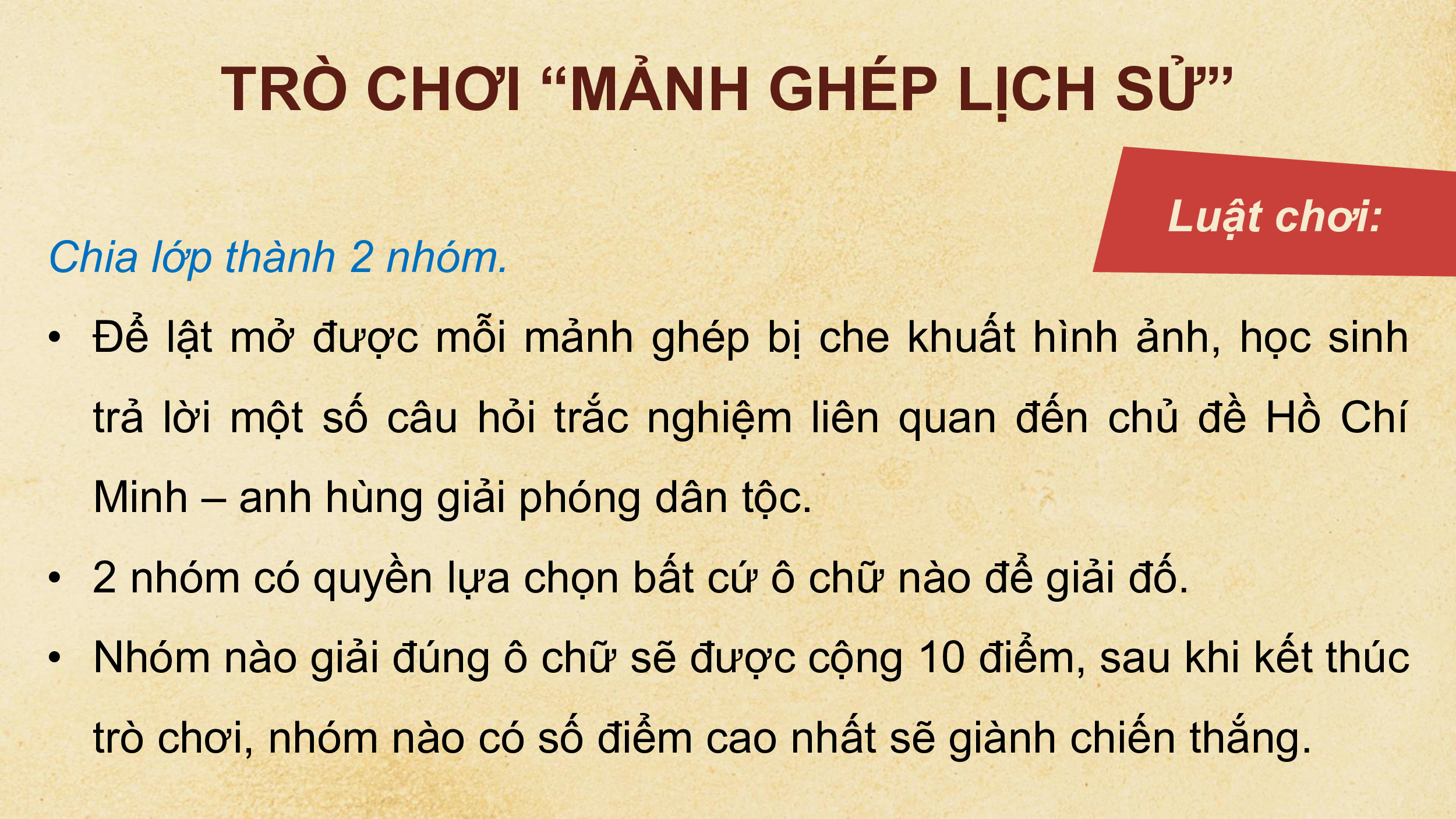 TRÒ CHƠI “MẢNH GHÉP LỊCH SỬ” Luật chơi: