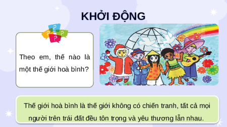 lợi của bản lĩnh Việt Nam KHỞI ĐỘNG Theo em, thế nào là một thế giới hoà bình?