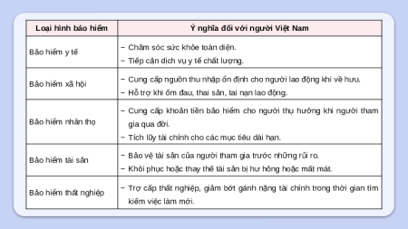 Các em hãy kể về một số loại hình bảo hiểm mà bản