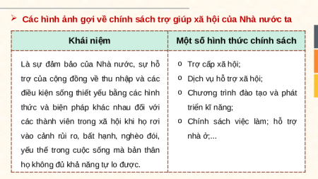 Các hình ảnh gợi về chính sách trợ giúp xã hội của Nhà nước ta Khái niệm