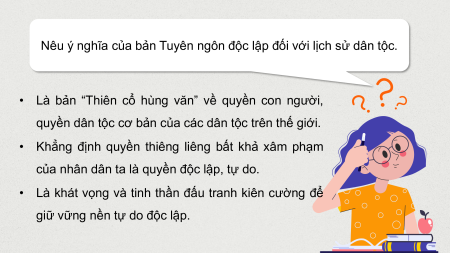 Nêu ý nghĩa của bản Tuyên ngôn độc lập đối với lịch sử dân tộc.
