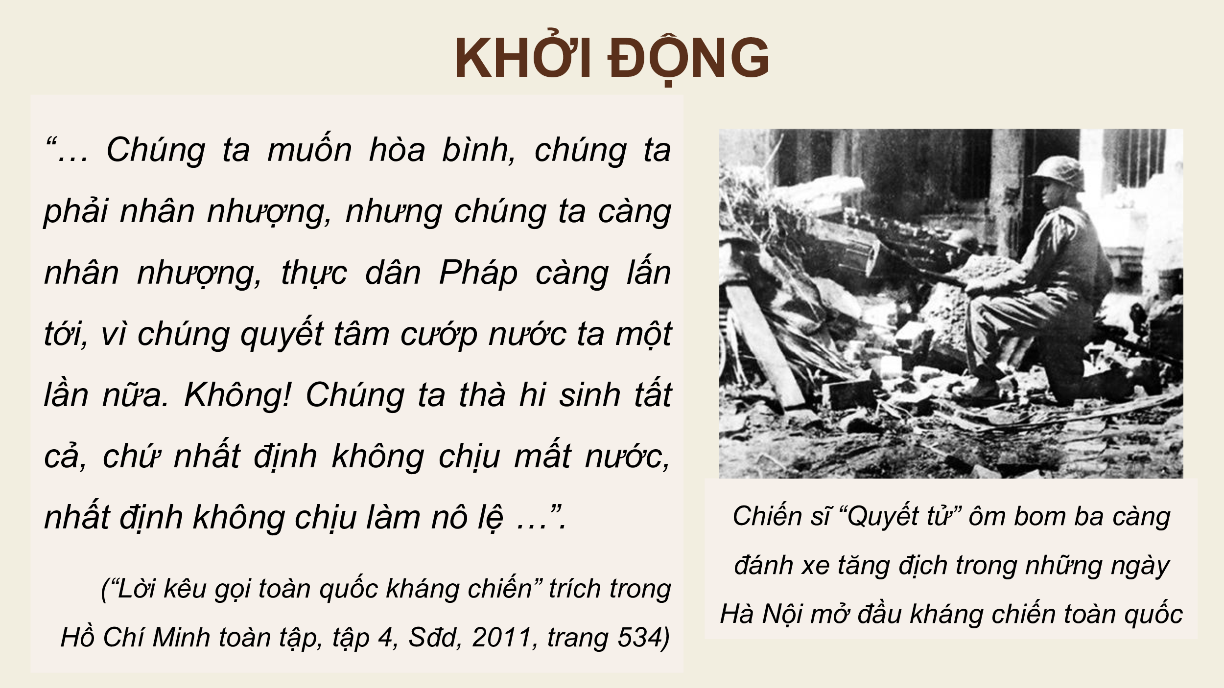 (“Lời kêu gọi toàn quốc kháng chiến” trích trong