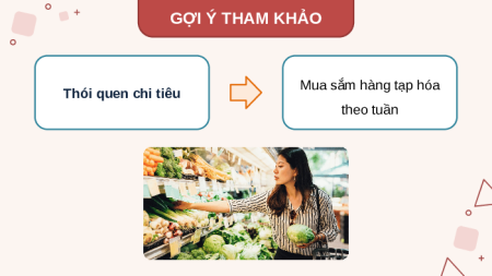 trong gia đình em và nhận xét về thói quen đó. GỢI Ý THAM KHẢO Mua sắm hàng tạp hóa Thói quen chi tiêu theo tuần GỢI Ý THAM KHẢO